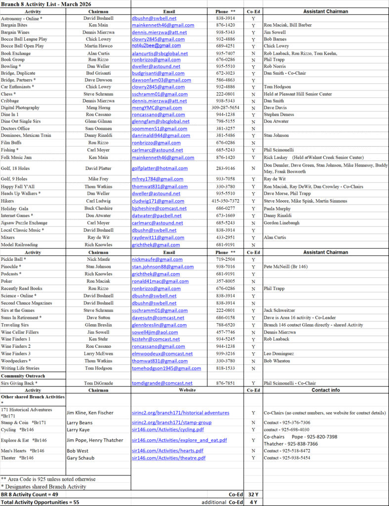 Alphabetical list of Activities